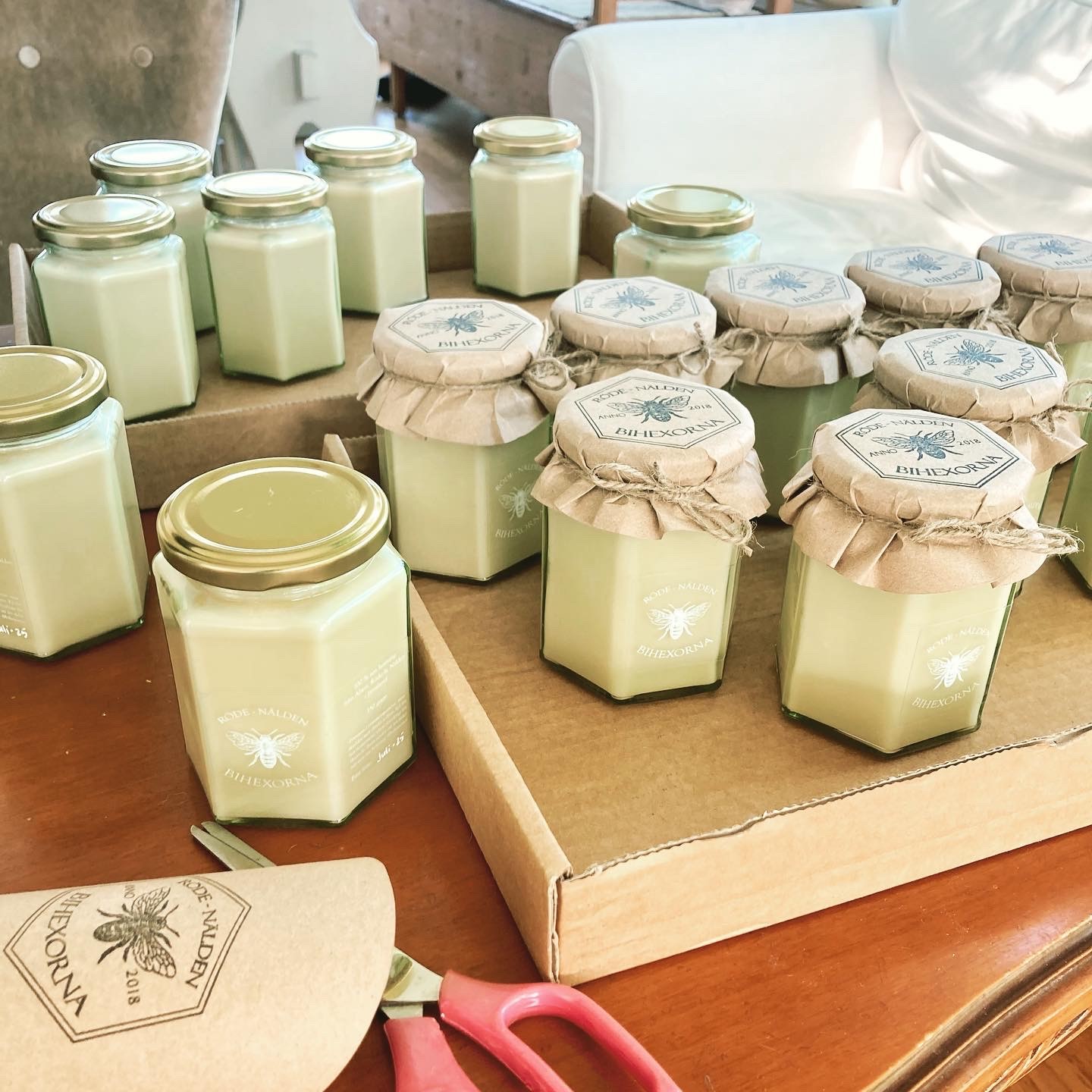I mån av tillgänglighet säljer vi överskott på grönsaker, fröer, ägg, äppelmust, snittblommor, plantor, hemlagade drycker och honung som producerats på gården.